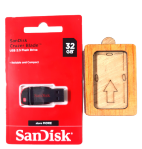 This is San Disk Cruzer Blade USB 2.O flash Drive with 32 GB Memory With free attractive Wooden Case .You can store, transfer and share video, music and other files in given pendriveThe Give Pen drive is Ultra-compact and portable USB flash driveShare your work files between computers with easeyou can also gift it to your Loved one Because it contain attractive crafty wooden case with Free Pen drive